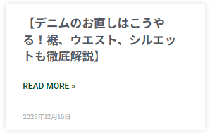 デニムのお直しはこちらのブログでもご紹介しているので、是非ご覧ください。