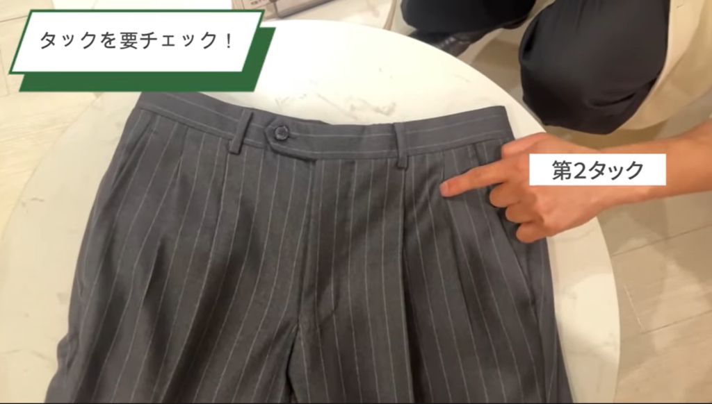 特に昔のスラックスには、タック(折り込み)が入っているものが多く、このタックをほどくことでさらにサイズを出すことが可能です。