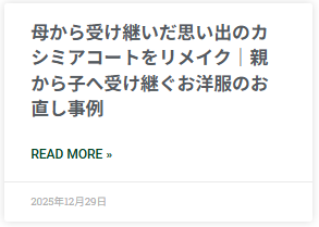 「受け継ぐお直し」は以前にも「母から受け継いだ思い出のカシミアコートをリメイク」でご紹介しております。