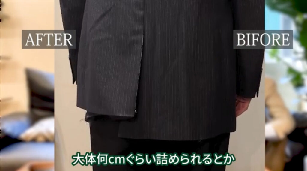 具体的にジャケットのどこをどのように詰めるのかについてお話していきたいと思います。